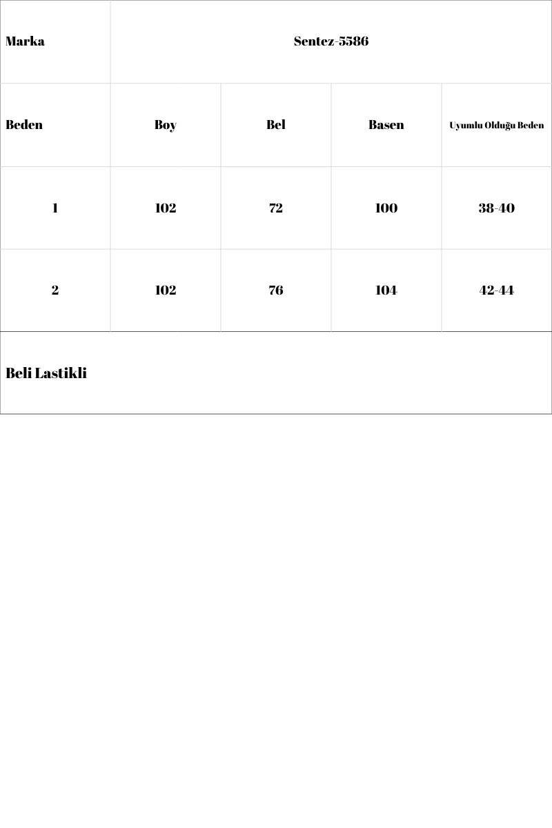 Beden | Boy | Bel | Basen | Uyumlu Olduğu Beden |